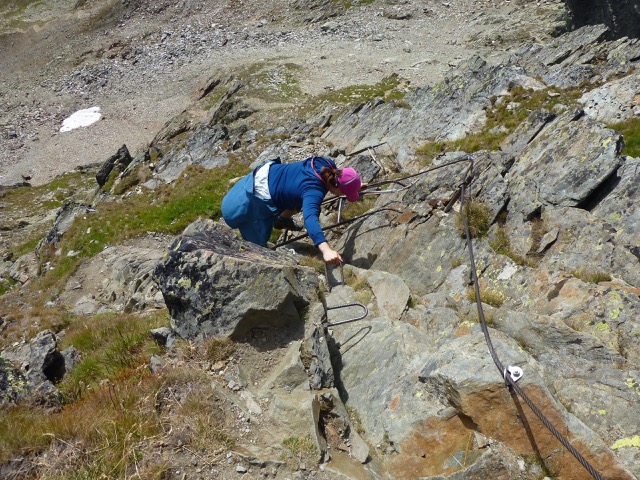 At one point the trail was supposed to cross the river on a narrow ledge. Since the glacier rivers are controlled by a large dam uphill from here, several times a day the dam is opened to let a deluge of water down the valley. During these times the path is flooded and instead we had to climb up an incredibly steep cliff to pass over it!